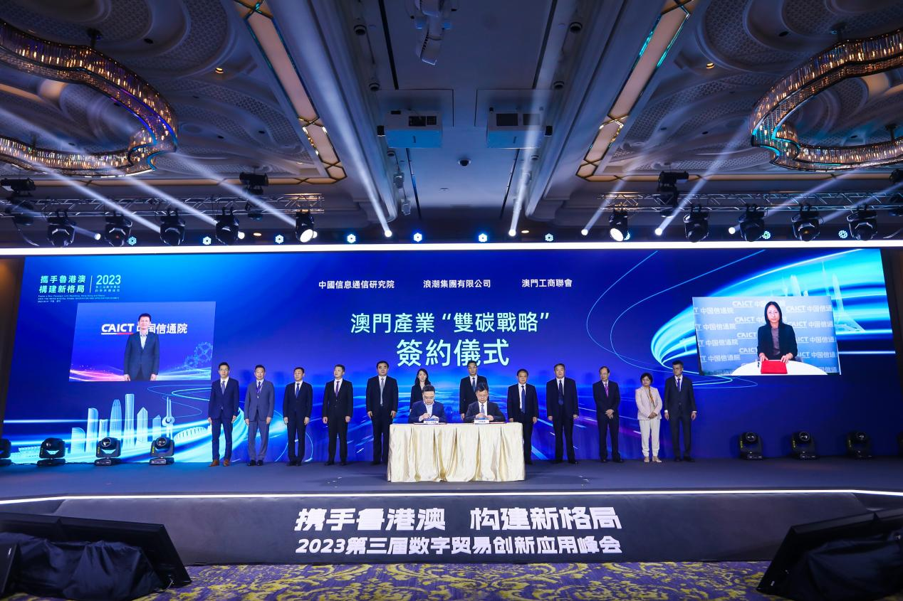 6月1日,在2023第三届数字贸易创新应用峰会上,浪潮集团与澳门工商联会、中国信息通信研究院签署澳门产业“双碳战略”三方协议,依托浪潮云洲双碳、能源、园区等成熟解决方案,在新能源、低碳技术、环保材料、生态恢复等领域助力澳门产业绿色低碳转型。