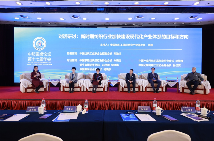 2023年2月26日,中纺圆桌论坛第十七届年会在北京亚洲大酒店举行。主题为“聚力纺织现代化产业体系新开局”,力求在我国全面建设社会主义现代化国家开局起步之年,研判宏观经济走势,改善企业预期,提振行业信心;同时,探讨纺织行业在新时期加快建设现代化产业体系的目标和路径。