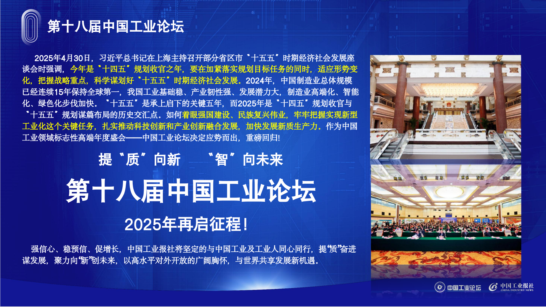 提“质”向新、“智”向未来——第十八届中国工业论坛正式启动