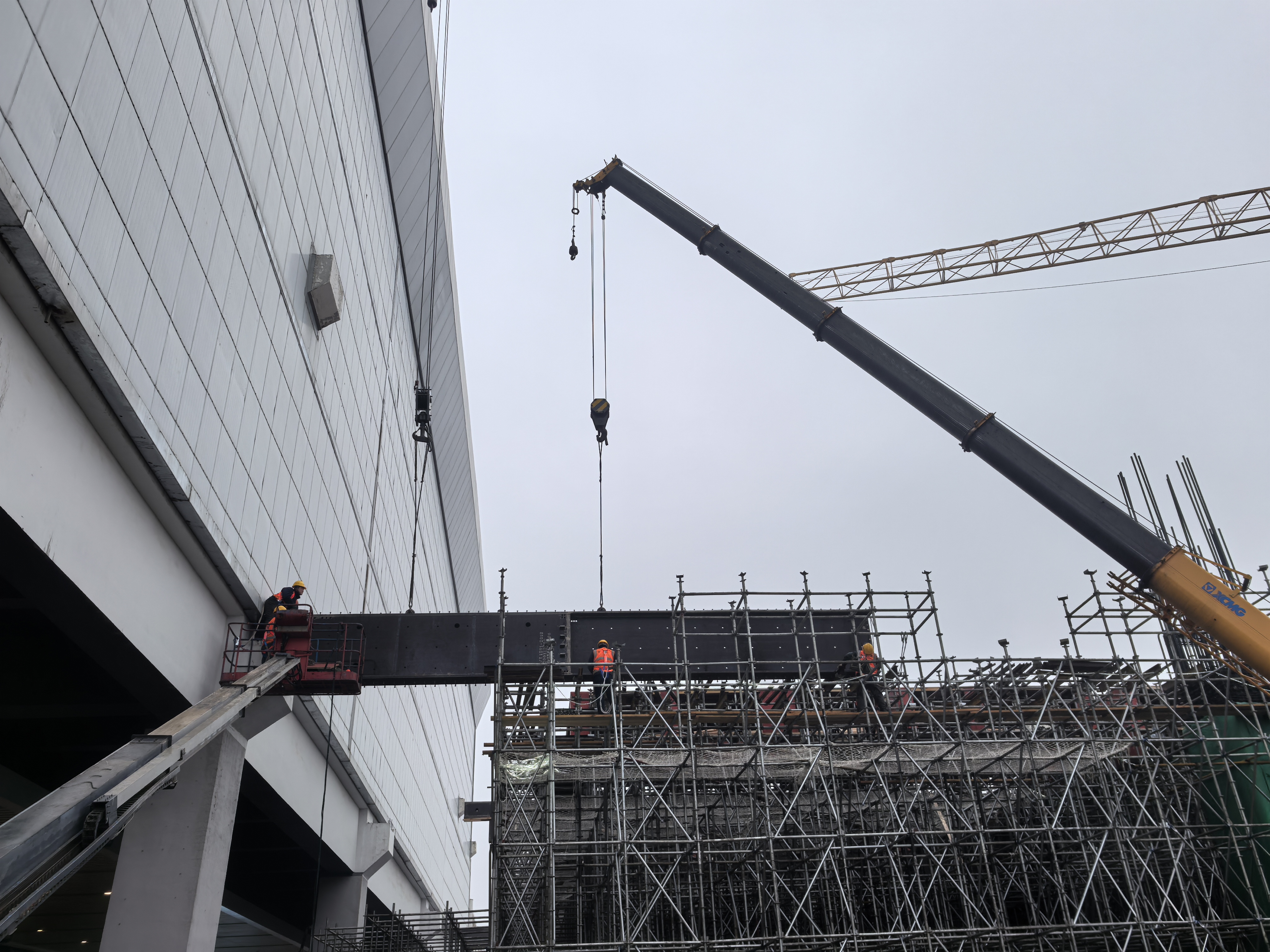 为加快施工进度,项目部充分利用凌晨高铁“天窗期”开展邻近营业线施工,并创新应用多项技术工艺。钢梁采用吊装焊接+后期滑移安装方式,提前完成关键构件布置,节省了主体施工时间;站房承台区域实施“逆做法”施工,用混凝土回填肥槽形成作业面后再进行承台浇筑,优化了传统模板支设及拆除,施工效率显著提升。针对低温天气,项目部还根据气温变化,合理调整混凝土施工及养护时间,确保工程质量。