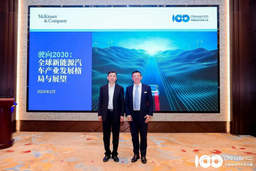 2月27日,中国电动汽车百人会成果发布会暨百人会论坛(2024)专家媒体交流会在北京钓鱼台大酒店举行。会议期间,中国电动汽车百人会与麦肯锡共同发布了联合研究报告《驶向2030:全球新能源汽车产业发展格局与展望》。
