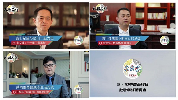 基于当代年轻人的特质,来自娃哈哈集团、三一重工、格兰仕集团、金嗓子集团、惠达卫浴、图森木作、贝因美集团、南方黑芝麻集团、安踏集团和用友集团10位企业家代表,参与《大国品牌》之《510品牌》特别节目——致敬中国年轻消费者,拥抱中国年轻一代消费者。