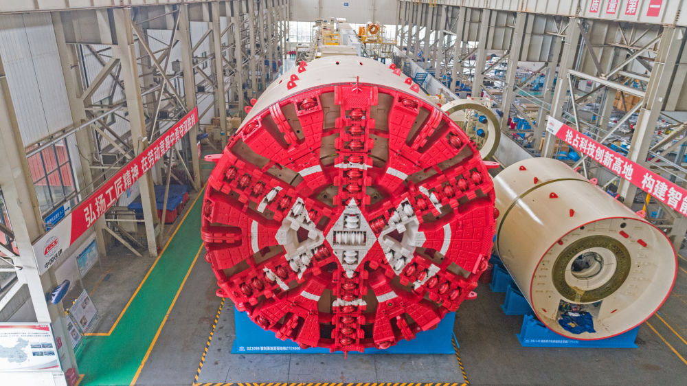 2022年10月,铁建重工出口智利用于圣地亚哥地铁的土压平衡盾构机在湖南长沙生产下线。新华社发(张升平摄)