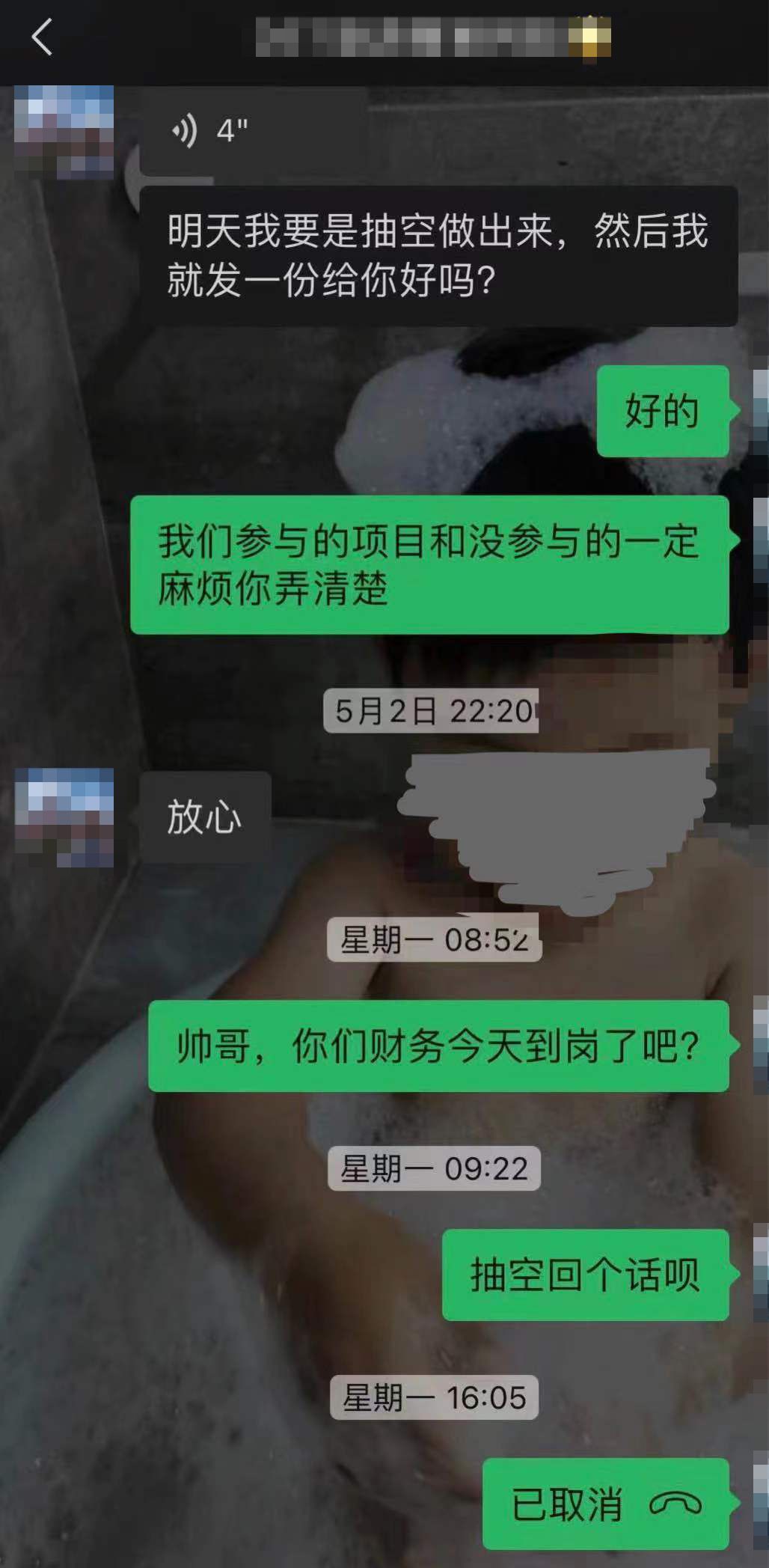 5月2日晚上陈先生再次询问退款流程,对方称需要等财务5月5日上班后处理。“5月6日一早我就发信息问他们,结果微信不回,电话也不接,当时我就急了,因为也不知道他们公司具体地址在哪,只是网上联系的。”