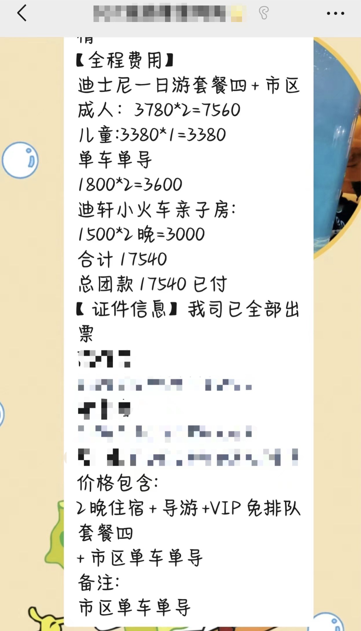 据陈先生介绍,因“五一”假期期间想带孩子去上海迪士尼乐园玩,就提前在短视频平台上搜索有关攻略和注意事项,刷到了一个账号名为“上海迪士乐旅行”的宣传视频,“视频里说可以单车单导直接到迪士尼、专人安排行程、走快速通道入园、游玩无需排队等等。我们第一次去迪士尼,想着有公司帮忙安排,能节省时间和精力也不错,我就通过私信联系了。”