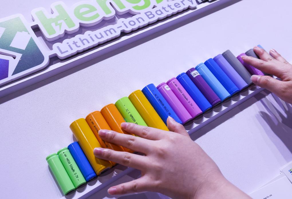 参展商在第135届广交会新能源展区布置锂电池展品(2024年4月15日摄)。新华社记者刘大伟摄