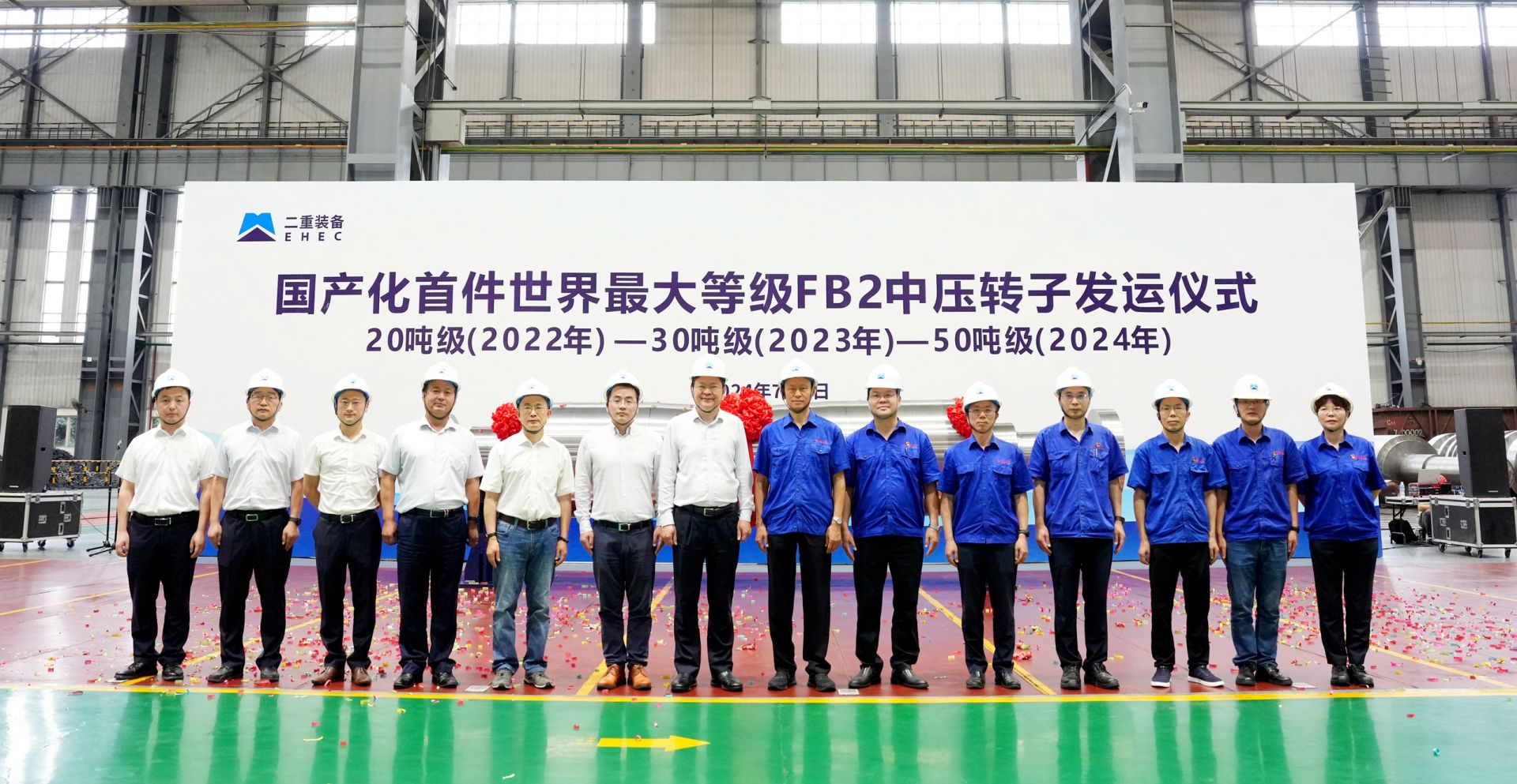 7月9日,国机重装研制的国产化首件世界最大等级FB2中压转子成功发运,标志着国机重装攻克了百万千瓦级超超临界机组FB2中压转子锻件全流程关键核心技术,成功实现了FB2材料全系列转子锻件进口替代,为保障国家能源装备产业链供应链安全提供了硬核支撑。上海电气电站集团党委书记张光耀,国机重装党委书记、董事长韩晓军现场见证发运。