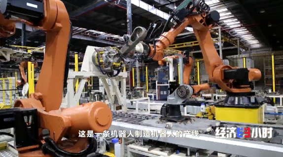 在上海一家工业机器人企业,能看到机器人生产机器人,只见它们自动抓取各种零部件进行组装,仅仅12分钟,就能组装出一台崭新的机器人。