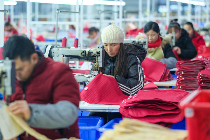 2024年1月18日,社区居民在红安社区的乡村振兴就业车间工作。红安社区是由易地搬迁安置区单独成立的新社区,位于湖南省湘西土家族苗族自治州凤凰县禾库镇。新华社记者张铖摄