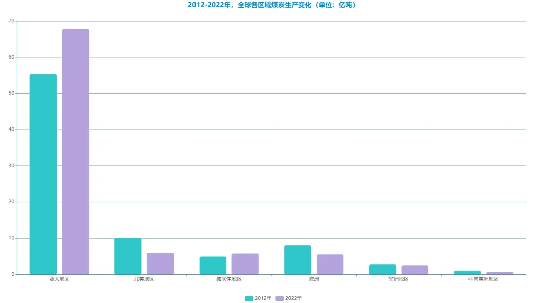 在2012-2022年期间,全球各大区域煤炭生产变化犹如一幅多彩画卷。