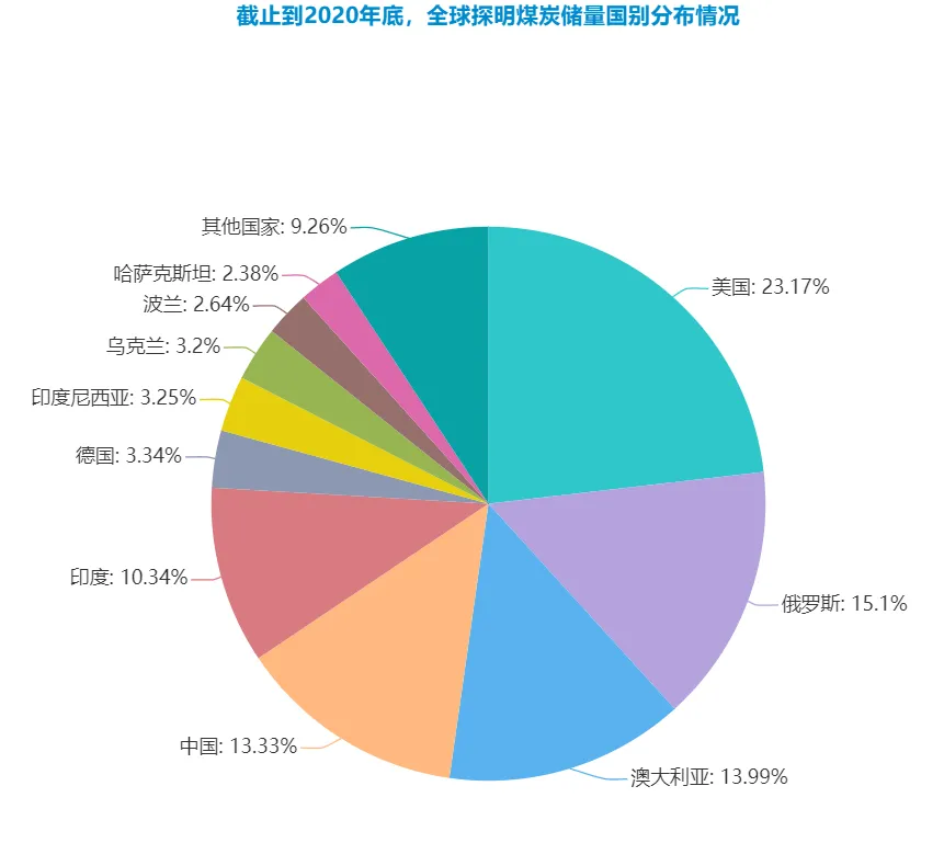 截止到2020年底,全球探明煤炭储量分布如下: