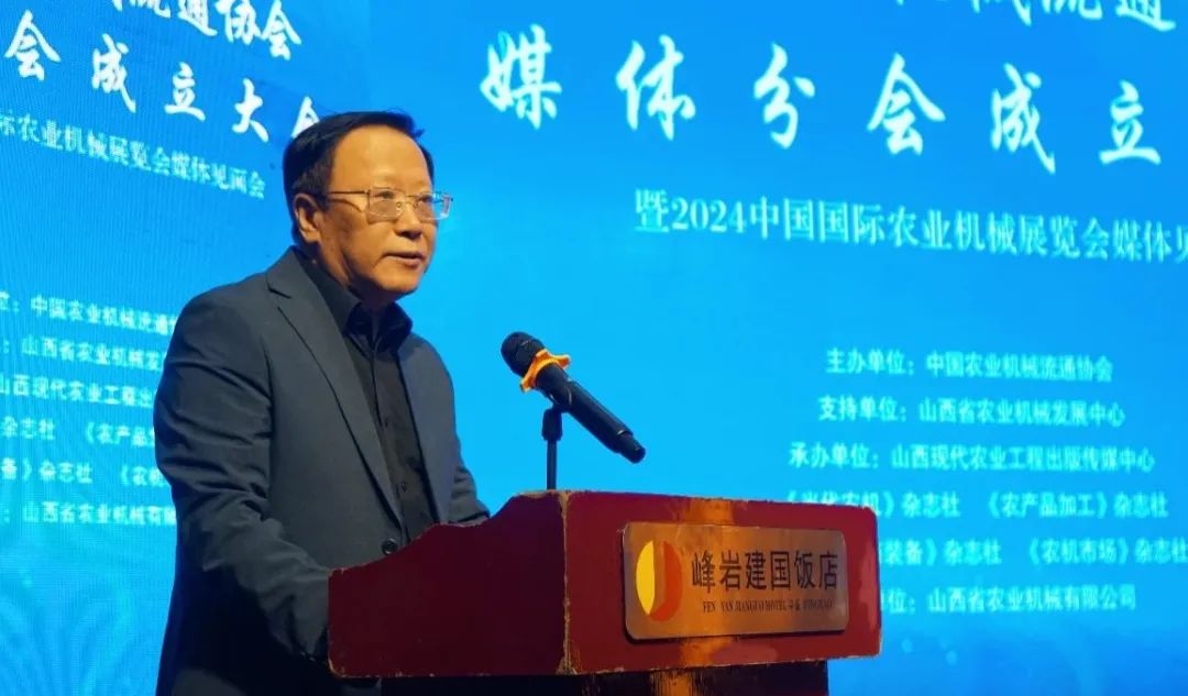 2024年10月18日,中国农业机械流通协会媒体分会成立大会暨2024中国国际农业机械展览会媒体见面会在山西平遥召开。山西省农业机械发展中心主任冯京民,天津市农业农村工作委员会原二级巡视员胡伟,中国农业机械流通协会会长范建华、监事长吴军旗,以及来自全国各地的40余家农机媒体代表和中国一拖、潍柴雷沃、中联农机、约翰迪尔、凯斯纽荷兰、久保田等农机企业代表共计70余人参加了本次会议。会议由吴军旗主持。