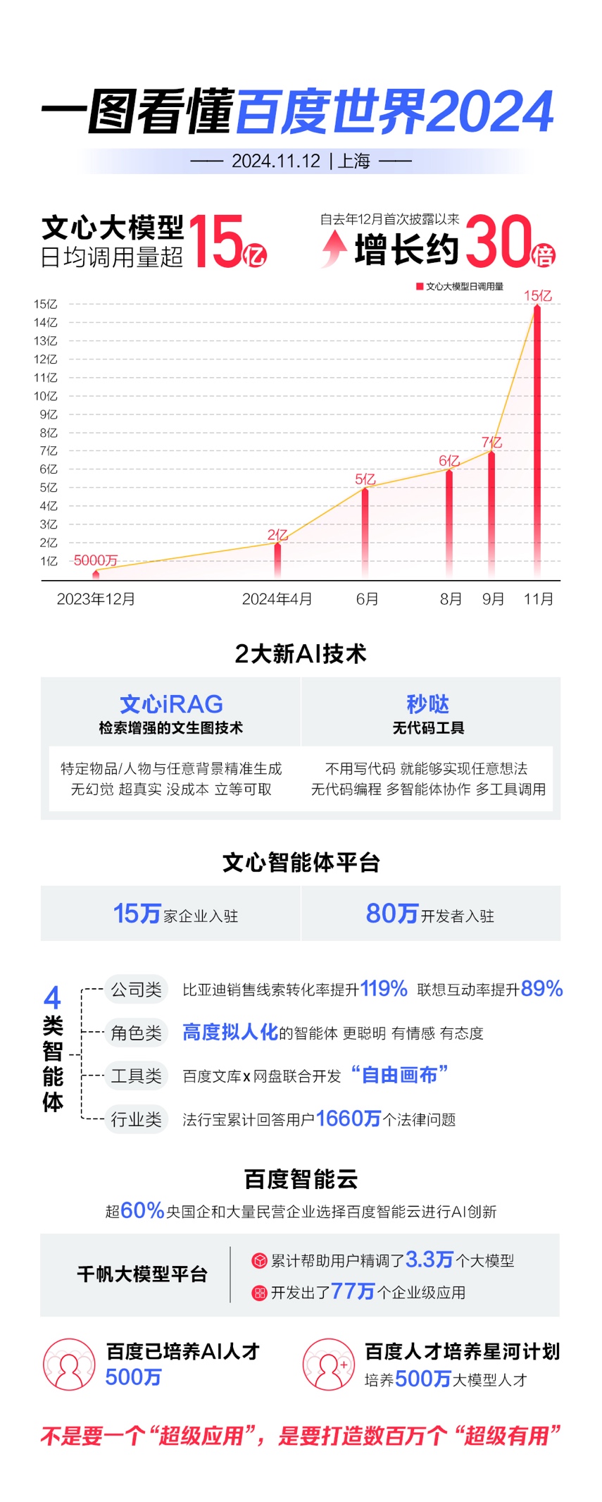 文心大模型日调用量达15亿,代表着过去两年中国大模型应用的爆发