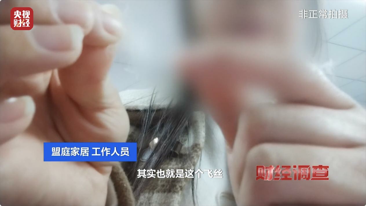 《财经调查》记者来到南通市南海路的盟庭家居,进入羽绒被的生产场地,工作人员向记者透露,他们生产的是填充“飞丝”的假羽绒被。