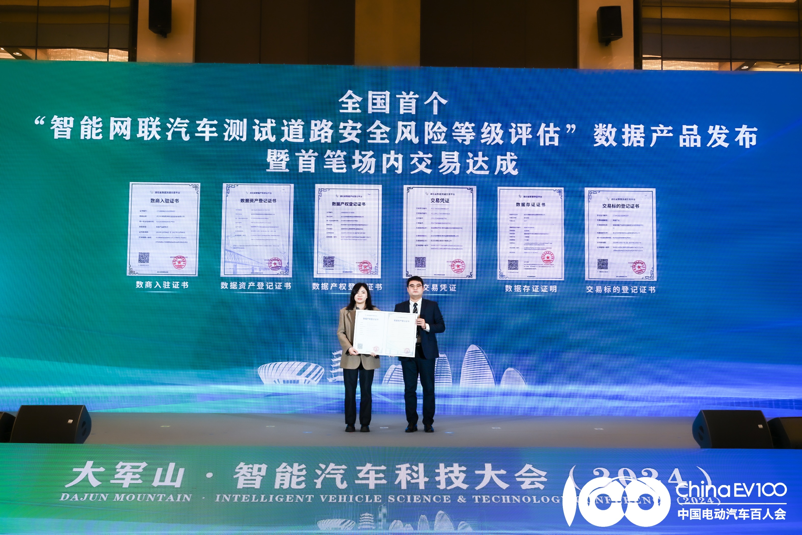 12月20日,首届大军山·智能汽车科技大会在武汉召开。在大会上,“中部数据流通服务中心-武汉经开运营中心”正式揭牌成立,并由武汉车网智联测试运营管理有限公司(以下简称“武汉车网智联公司”)运营。同时,武汉车网智联公司获湖北数据集团中部数据流通服务中心颁发的《数据资产登记证书》、《数据产权登记证书》等五项权威数据证书,更完成了国内首例“智能网联汽车测试道路安全风险等级评估”数据产品的发布与场内交易。