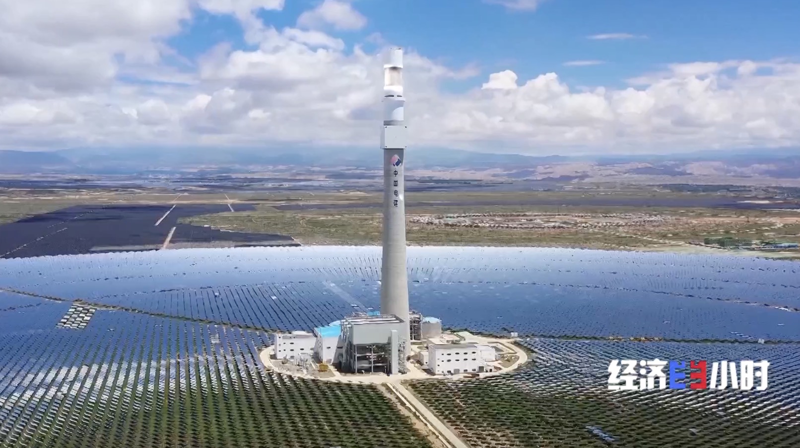 在塔式光热电站,单面定日镜的面积达20平方米,210米高塔之下,超过30000面定日镜呈同心圆排列,如向日葵追光逐日一般,将阳光精准反射至塔顶集热器,实现清洁电能24小时稳定供应。满负荷两小时,基本上就可以发10万度电。