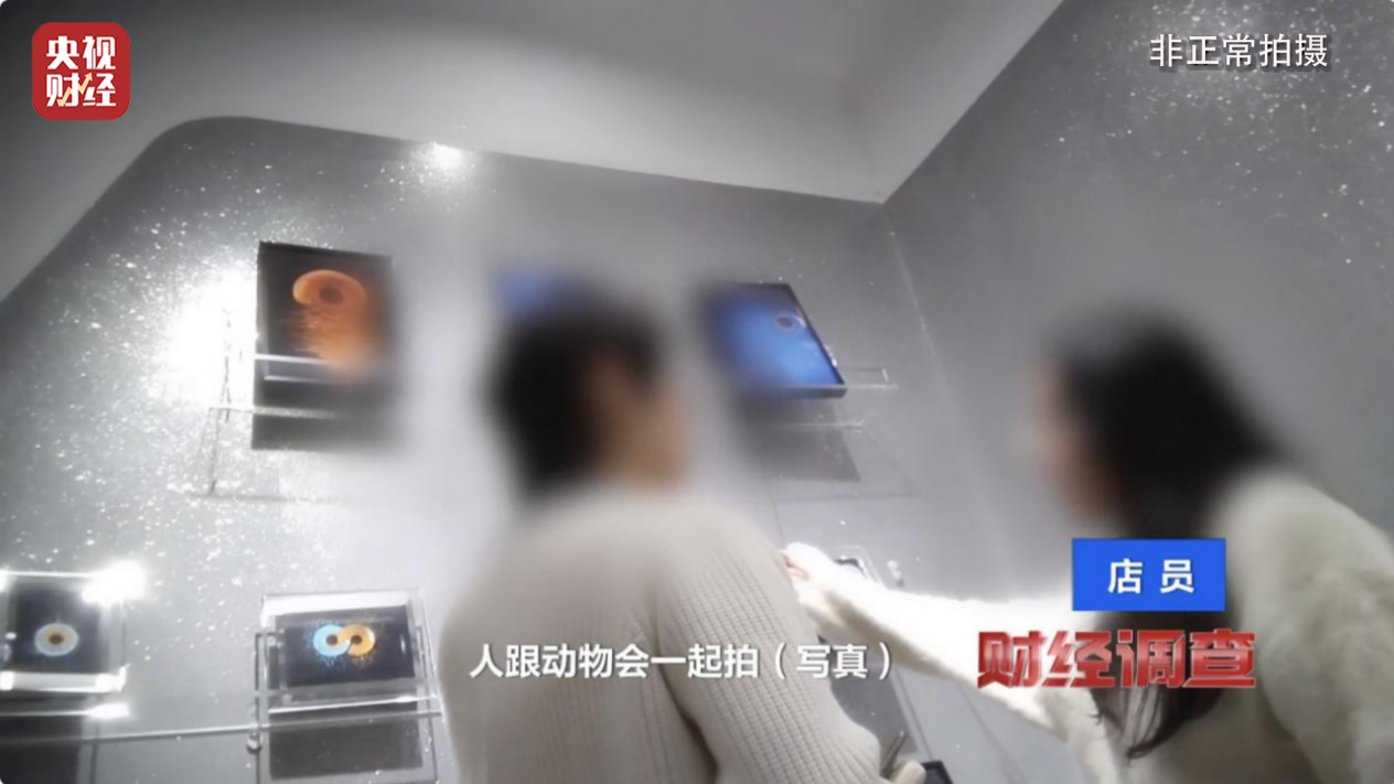 《财经调查》记者来到上海一家名为“炫瞳星座”的虹膜写真馆,商铺的墙面上,挂着很多已经制作完成的照片。不只有人的,还有动物的。