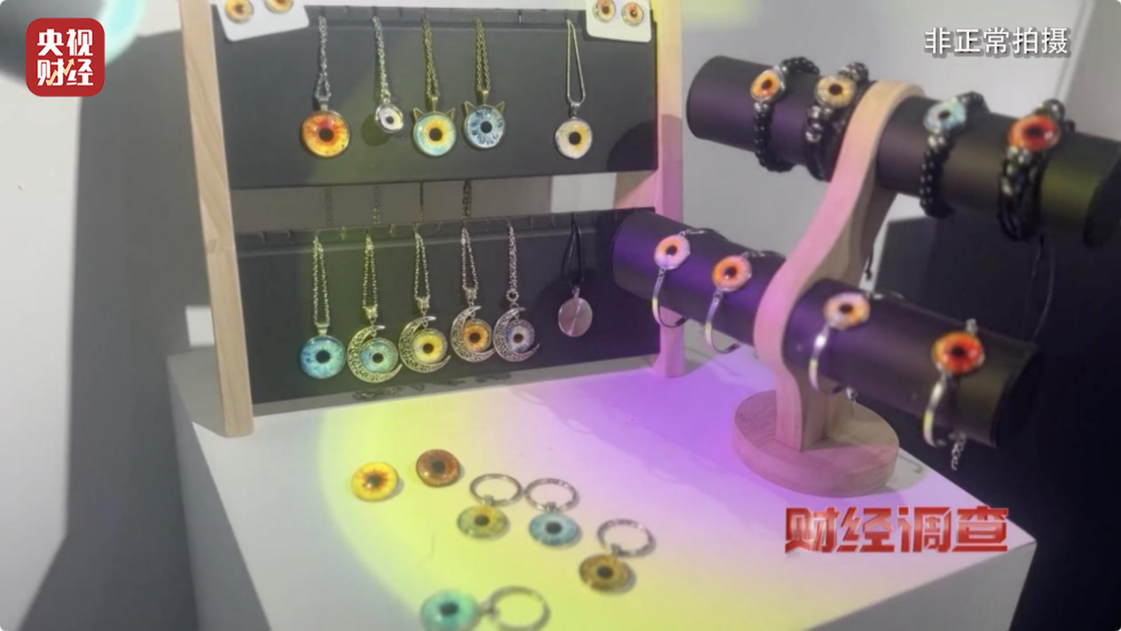 随后,《财经调查》记者又来到了位于南京市中山南路大洋百货8楼的这家“一眼星河·虹膜写真艺术馆”,房间内墙上是各种虹膜写真的照片。虹膜制作的饰品琳琅满目非常逼真。