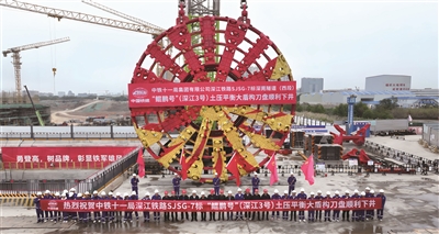 “鲲鹏号”(深江3号)土压平衡大盾构刀盘顺利下井。