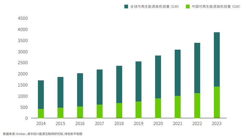 2014年-2023年全球及中国可再生能源装机容量趋势