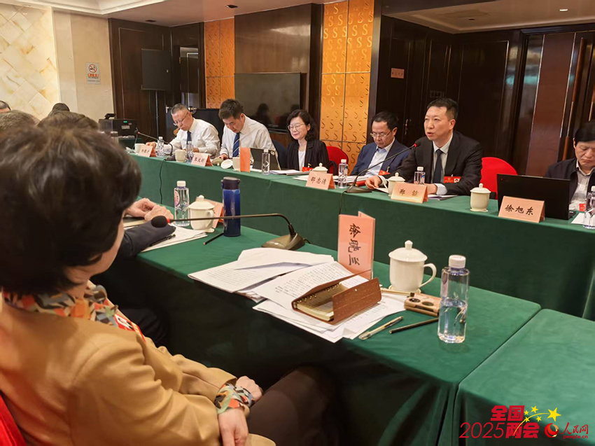 3月5日,全国政协十四届三次会议致公党界别委员小组会议现场。当前面有委员正在发言时,其他委员竖起桌牌“排队”等待发言。人民网记者毛雷摄