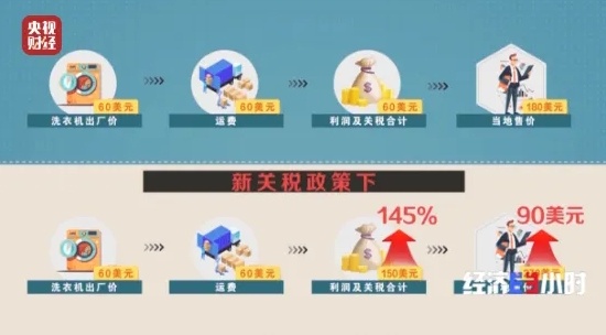 他们每台洗衣机出厂价约60美元,原来在美国当地售价180美元左右,根据现在的关税政策,它的售价要达到270美元。突如其来的变化让这个美国客户只能选择暂时放弃780台洗衣机的订单。