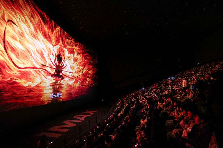 2月25日,观众在贵阳越界影城IMAX影厅内观看电影《哪吒2》。新华社记者欧东衢摄