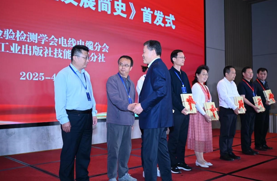 中国检验检测学会电线电缆分会副会长兼秘书长《中国电线电缆行业发展简史》主编、上海缆慧检测技术有限公司董事长吴长顺发言及赠书