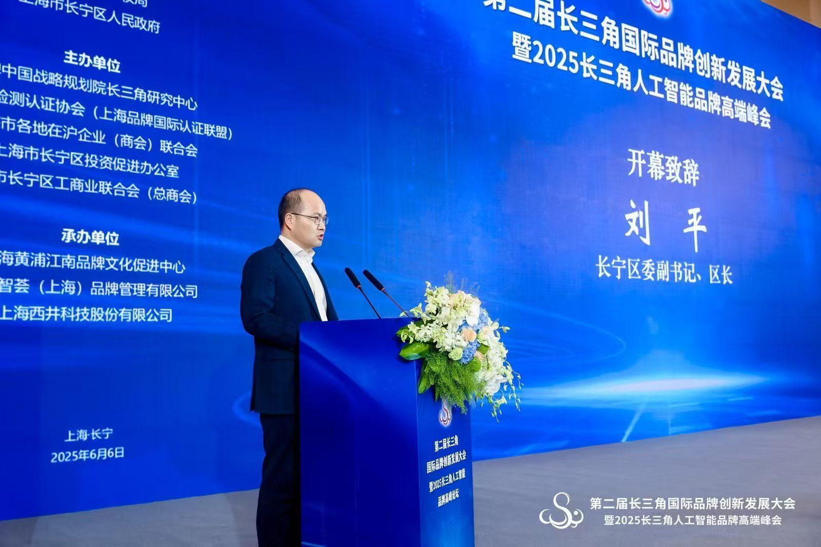 2025年6月6日,第二届长三角国际品牌创新发展大会暨2025长三角人工智能品牌高端峰会在上海市长宁区举办。大会由上海虹桥国际中央商务区管理委员会、上海市知识产权局和长宁区人民政府指导,上海市检验检测认证协会、上海市各地在沪企业(商会)联合会、长宁区投资促进办公室、长宁区工商业联合会联合主办,上海黄浦江南品牌文化促进中心、环贸智荟(上海)品牌管理有限公司、上海西井科技股份有限公司联合承办。上海市委统战部副部长、市工商联党组书记王霄汉,长宁区委副书记、区长刘平出席并致辞。长三角各地商会人士、企业界人士、专家学者和政府相关部门负责人近500位与会。