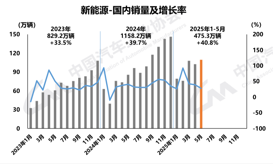 6月11日,中国汽车工业协会发布最新数据显示,在“两新”政策、新车投放及车展促销等多重利好推动下,5月汽车市场延续高增长态势。其中新能源汽车表现尤为抢眼,不仅单月渗透率创下历史新高,出口更实现爆发式增长,展现中国汽车产业强劲动能。