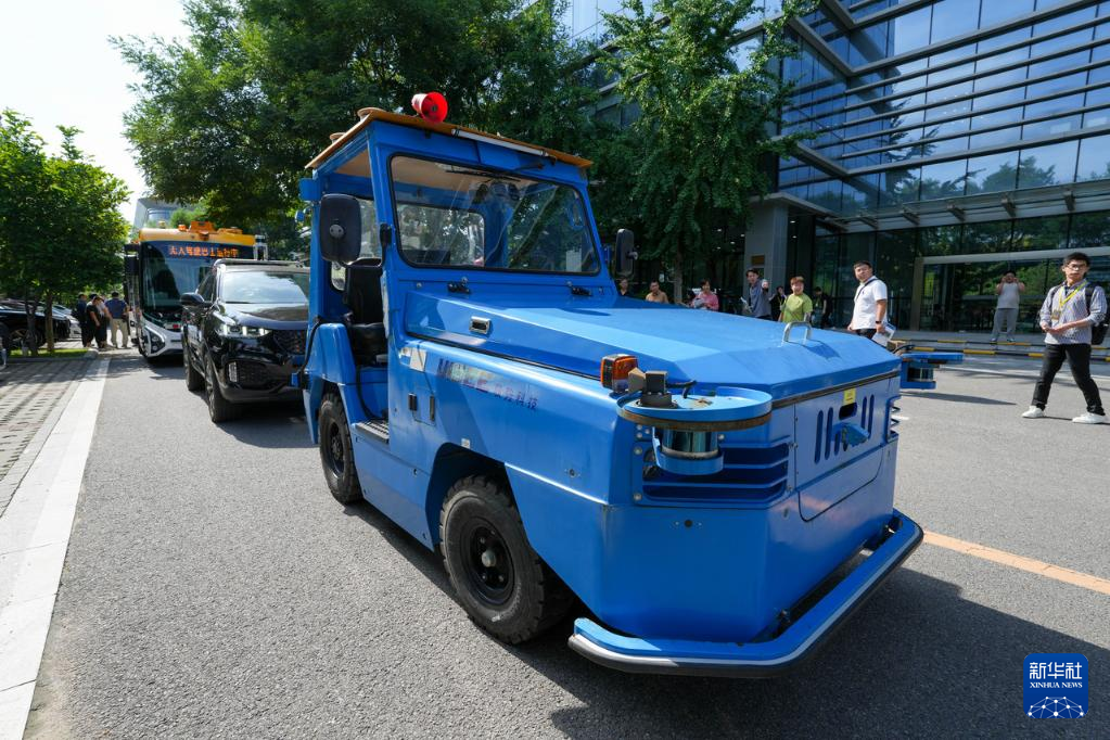 6月16日,在北京驭势科技拍摄的一款用于机场物流作业的无人驾驶牵引车。新华社记者鞠焕宗摄