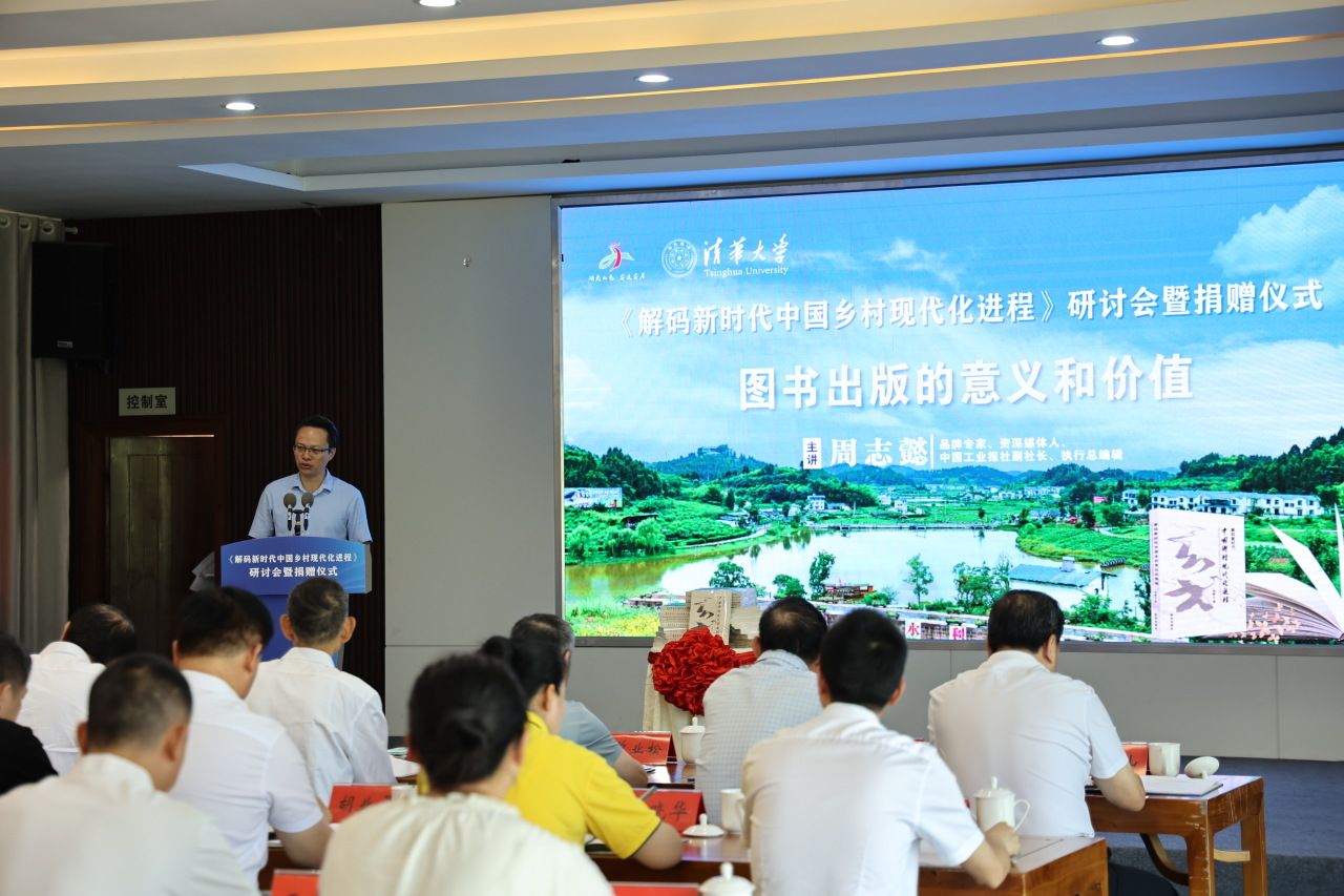 会上,中国工业报社副社长、执行总编辑周志懿对该书作了全面剖析与解读;国家乡村振兴局原开发指导司副司长、乡村建设高校联盟专家委员会副主任、《解码新时代中国乡村现代化进程》作者刘晓山分享了创作初衷和核心观点;中央党校研究员、原研究室一级巡视员、副主任曾业松,中国人民大学农业与农村发展学院教授汪三贵,清华大学美术学院副教授、博导、健康服务创新与设计研究所所长王国胜等专家学者作了点评分享;书中案例代表、全国脱贫攻坚奖获得者潘建章、闻彬军、胡业勇和北京微孝暖夕慈善基金会监事长郑伟结合自身经历,就如何发挥企业示范带动作用,推进乡村全面振兴作了深入交流。