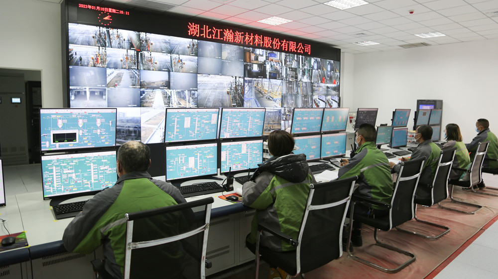 在江瀚新材的中央控制室,巨大的电子屏实时显示着各车间的运行数据,工程师通过鼠标操作就能完成远程调控。甘书官说,这是公司推进"工业互联网+危化品安全生产"建设的成果。过去,车间巡检依赖人工,不仅效率低,还存在安全隐患;如今,智能巡检系统、人员定位系统等技术的应用,让安全生产有了更可靠的保障。