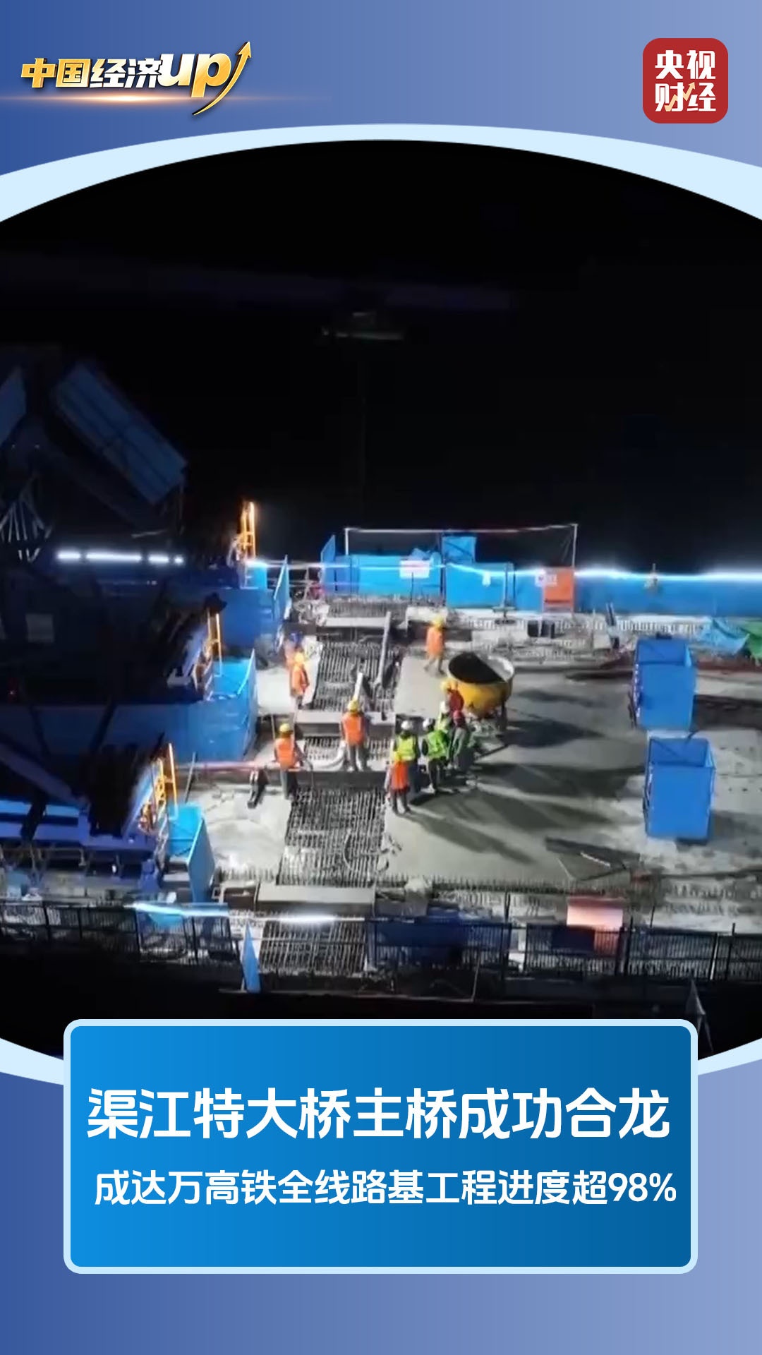 11月26日凌晨,成达万高铁一控制性工程——达州渠江特大桥主桥正式合龙。渠江特大桥主桥全长557.5米,是目前世界跨度最大的双线高速铁路预应力混凝土矮塔斜拉桥。为了实现高精度合龙,团队选择夜间“温度低、温差小”时段进行合龙,有效减少温度变化引起的结构变形,将大桥精度控制在“毫米级”范围,实现高质量合龙。