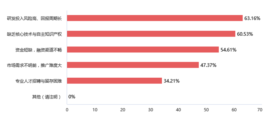 《研报》调研发现,企业在“十五五”时期布局新质生产力发展面临的最大挑战是研发投入风险高、回报周期长,其次是缺乏核心技术与自主知识产权以及资金短缺问题。