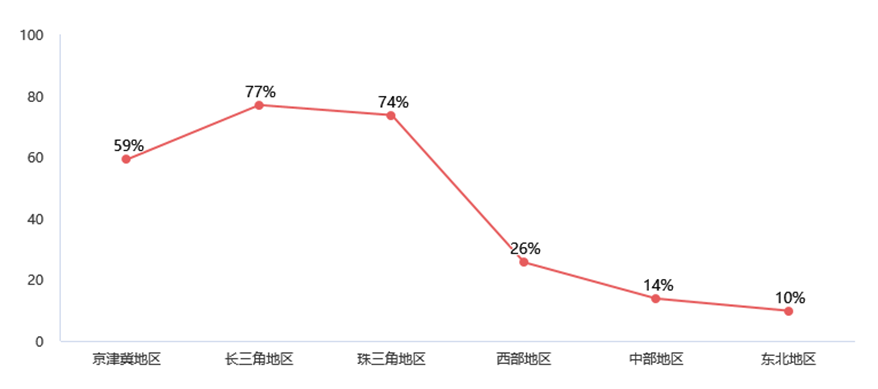 《研报》调研发现,长三角地区(76.97%)和珠三角地区(73.68%)是受访者眼中发展新质生产力概况较好的区域,其后是西部、中部和东北地区。