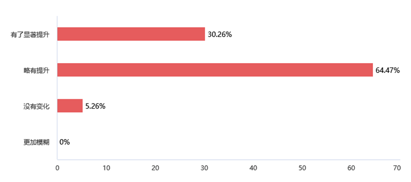 《研报》调研发现,30.26%的受访者对新质生产力的认识有显著提升,但64.47%的受访者对新质生产力的认识略有提升,还有5.26%的受访者对新质生产力的认识没有变化。