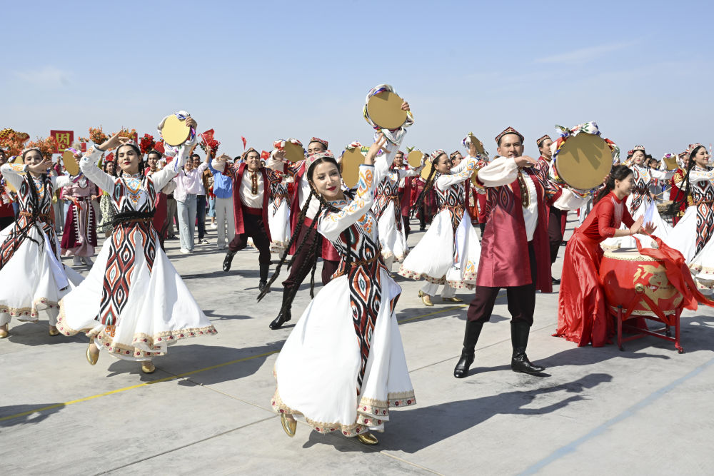 2025年9月23日下午,群众载歌载舞,喜迎新疆维吾尔自治区成立70周年。新华社记者谢环驰摄