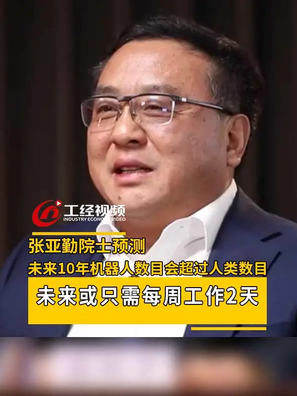 张亚勤院士预测:未来10年机器人数目会超过人类数目 未来或只需每周工作2天 #AI #人形机器人#未来或只需每周工作2天