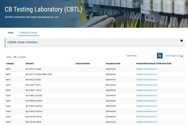 DEKRA 德凯授予中汽研汽车检验中心(广州)有限公司工业镍氢电池检测全系列CBTL资质