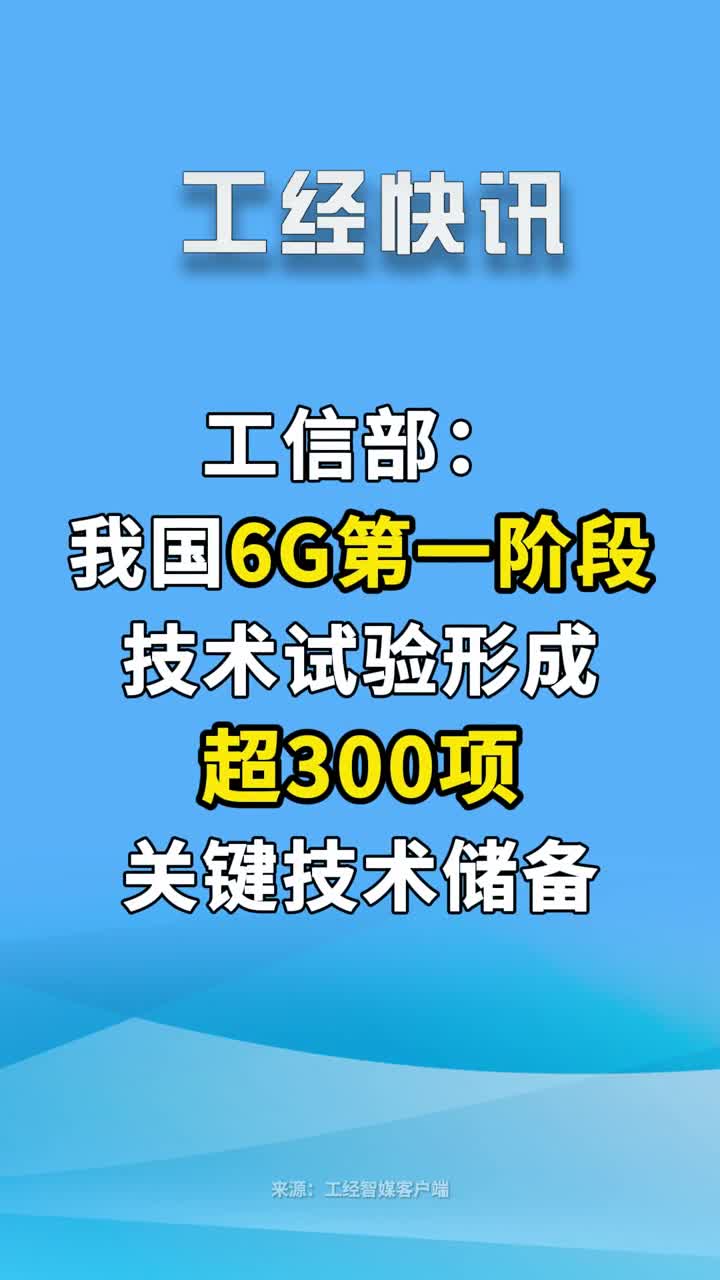 工信部:我国6G第一阶段技术试验形成超300项关键技术储备