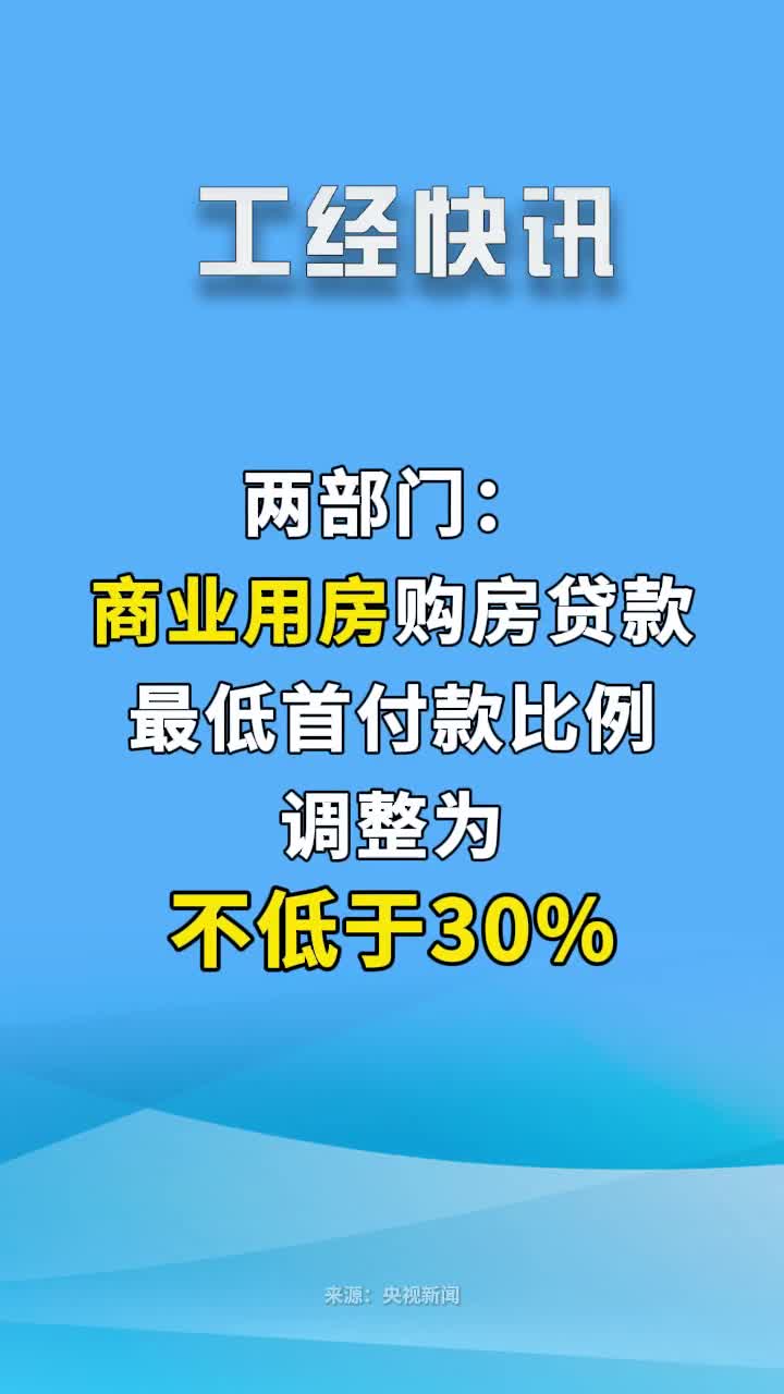 两部门:商业用房购房贷款最低首付款比例调整为不低于30% #商业用房购房贷款比例调整 #工经快讯