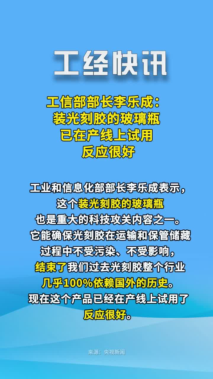 工信部部长李乐成:装光刻胶的玻璃瓶已在产线上试用反应很好 #装光刻胶玻璃瓶