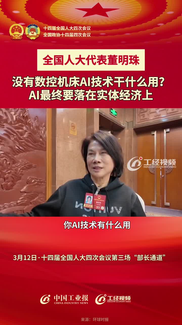 全国人大代表董明珠:没有数控机床AI技术干什么用?AI最终要落在实体经济上#2026全国两会 #中国工业报两会时间#AI#董明珠