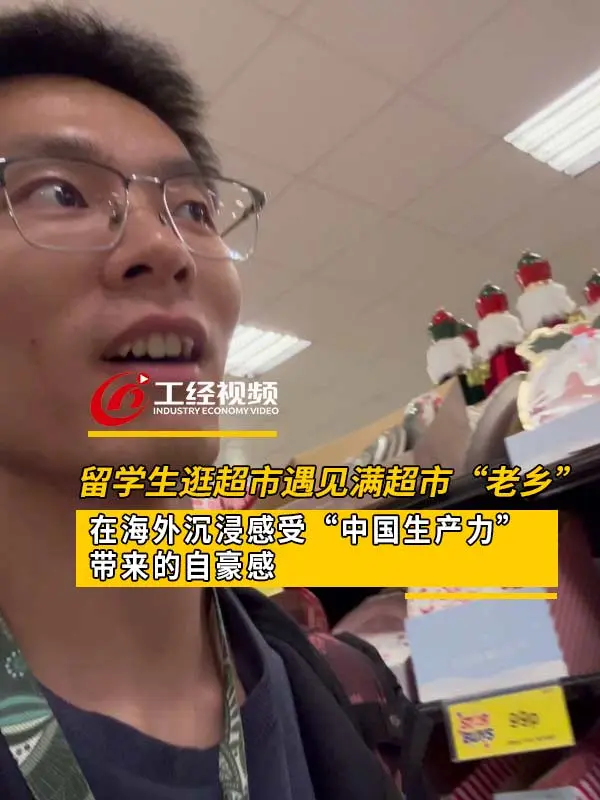 留学生逛超市遇见满超市“老乡” 在海外沉浸感受“中国生产力”带来的自豪感!#中国生产力#中国制造 (来源:工经智媒客户端 制作:缪领)