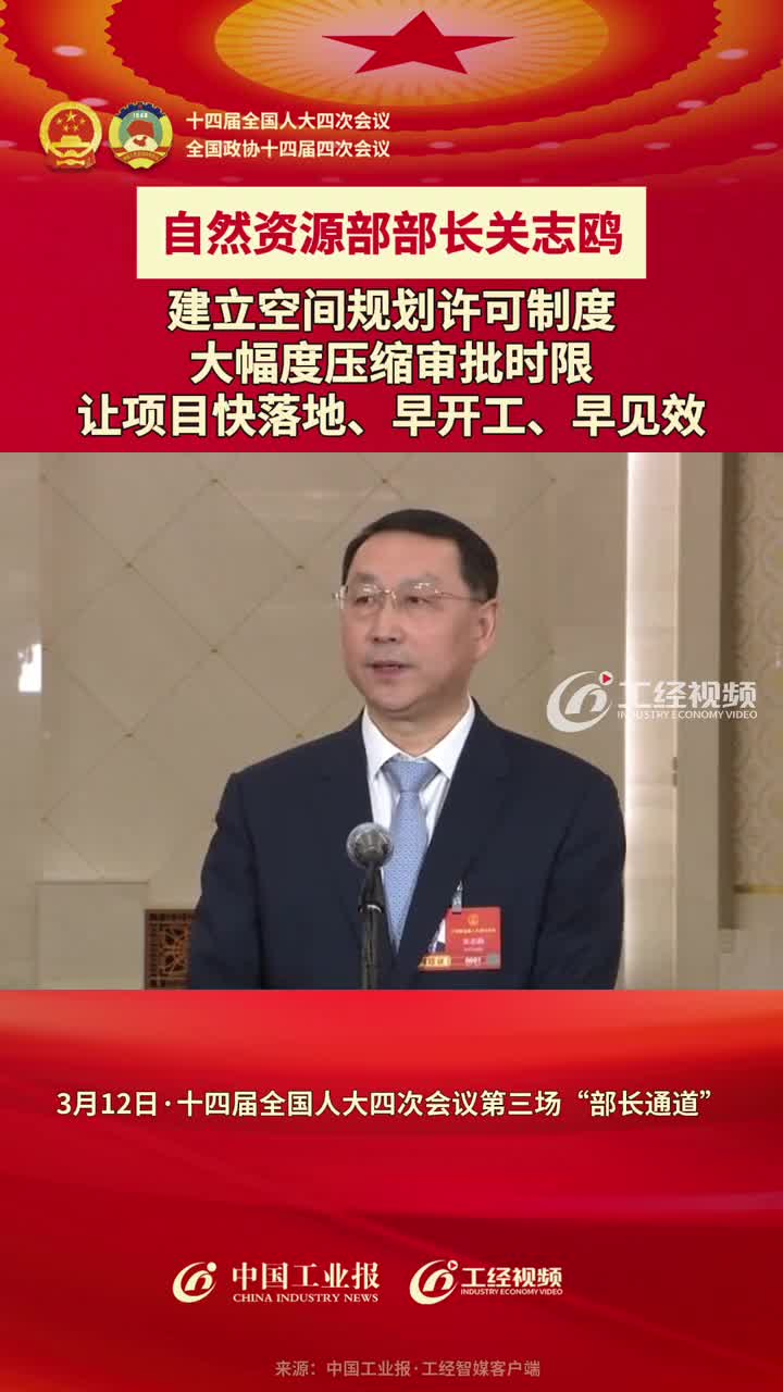 自然资源部部长关志鸥:建立空间规划许可制度,大幅度压缩审批时限,让项目快落地、早开工、早见效#2026全国两会 #中国工业报两会时间 #部长通道