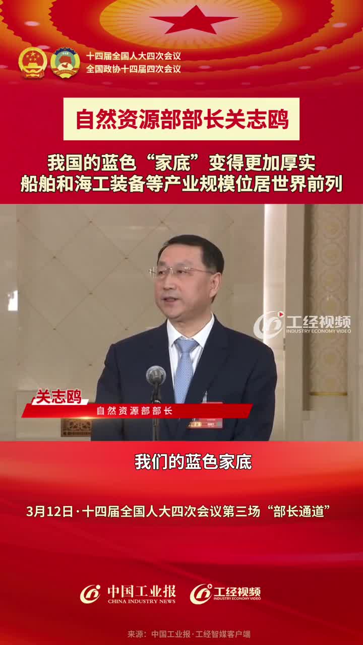 自然资源部部长关志鸥:我国的蓝色“家底”变得更加厚实,船舶和海工装备等产业规模位居世界前列#2026全国两会 #中国工业报两会时间 #部长通道
