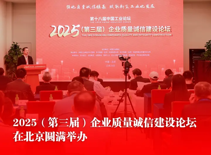 冬日京城,思想激荡。12月15日,由中国工业报社主办,中工智库、中工融媒(北京)科技有限公司重庆分公司等单位承办的“2025(第三届)企业质量诚信建设论坛”在北京国二招宾馆召开。原国家质量监督检验检疫总局党组成员,国家标准化管理委员会原党组书记、主任纪正坤,国家市场监督管理总局原总工程师黄国梁,中国工业报社党委书记、社长徐金宝等出席会议。论坛以“强化质量诚信根基,赋能新型工业化发展”为核心主题,汇聚政府领导、行业专家、知名企业家等各界嘉宾,共话质量诚信建设新路径,共绘新型工业化发展新蓝图。