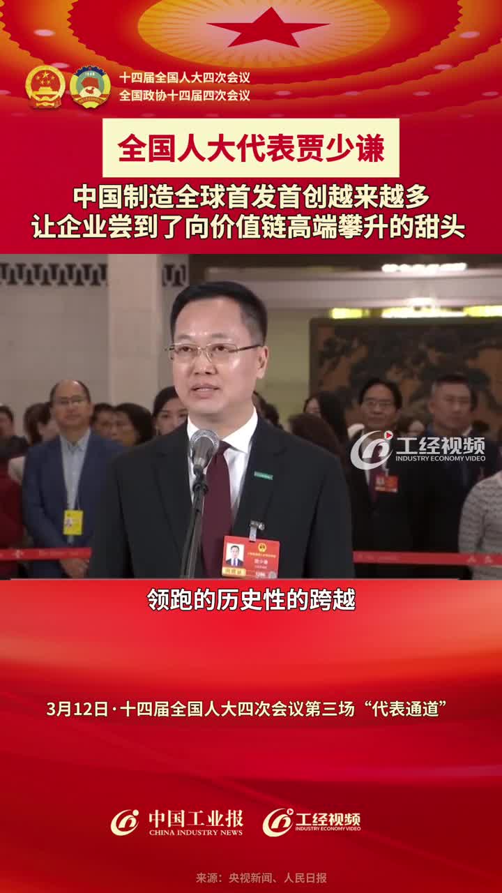 全国人大代表贾少谦:中国制造全球首发首创越来越多,让企业尝到了向价值链高端攀升的甜头 #2026全国两会 #中国工业报两会时间 #中国制造 #中国企业