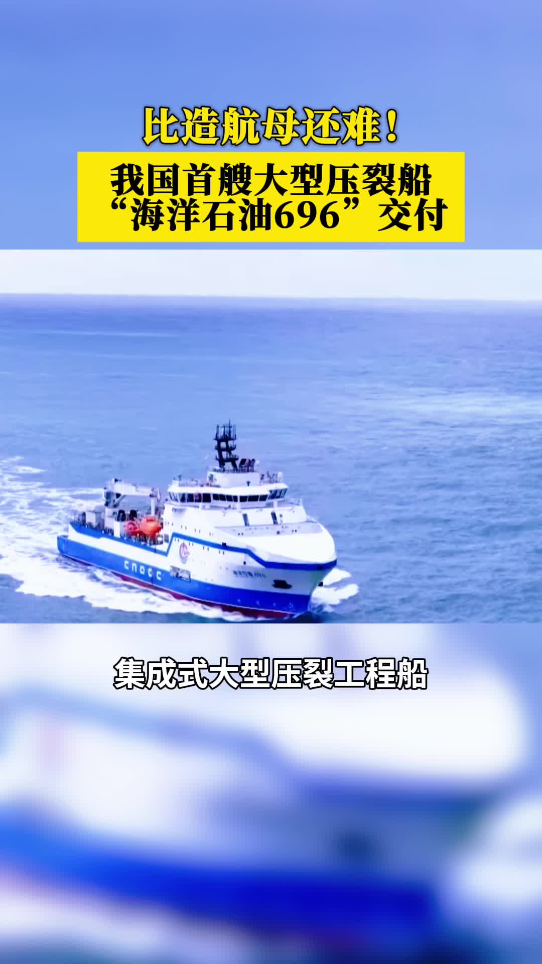 比造航母还难!我国首艘大型压裂船“海洋石油696”交付